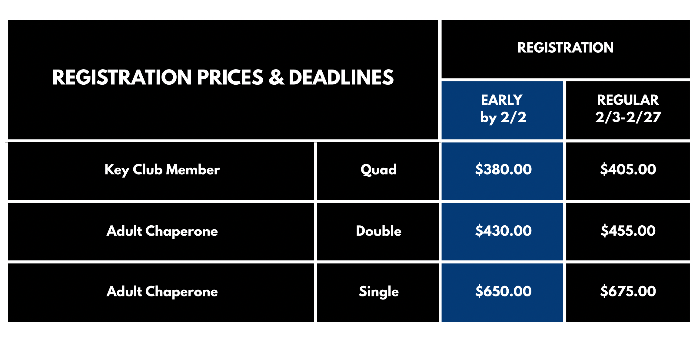 REGISTRATION PRICES & DEADLINES